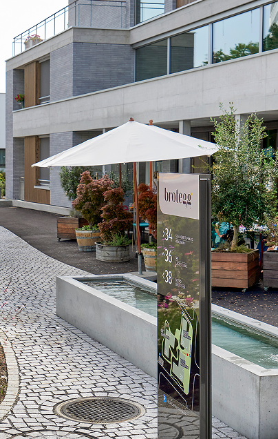 Vom Logo über das Branding bis zum Kommunikationskonzept wurde eine klare, einladende Markenwelt geschaffen. Auch die Untermarken Brotegg Praxis und Bistro Brotegg fügen sich stimmig in den Gesamtauftritt ein. Mit Signaletik, Website und allen Kommunikationsmitteln entsteht ein konsistentes Erscheinungsbild, das Brotegg Live als offenen Lebensraum mit hoher Aufenthaltsqualität erlebbar macht.