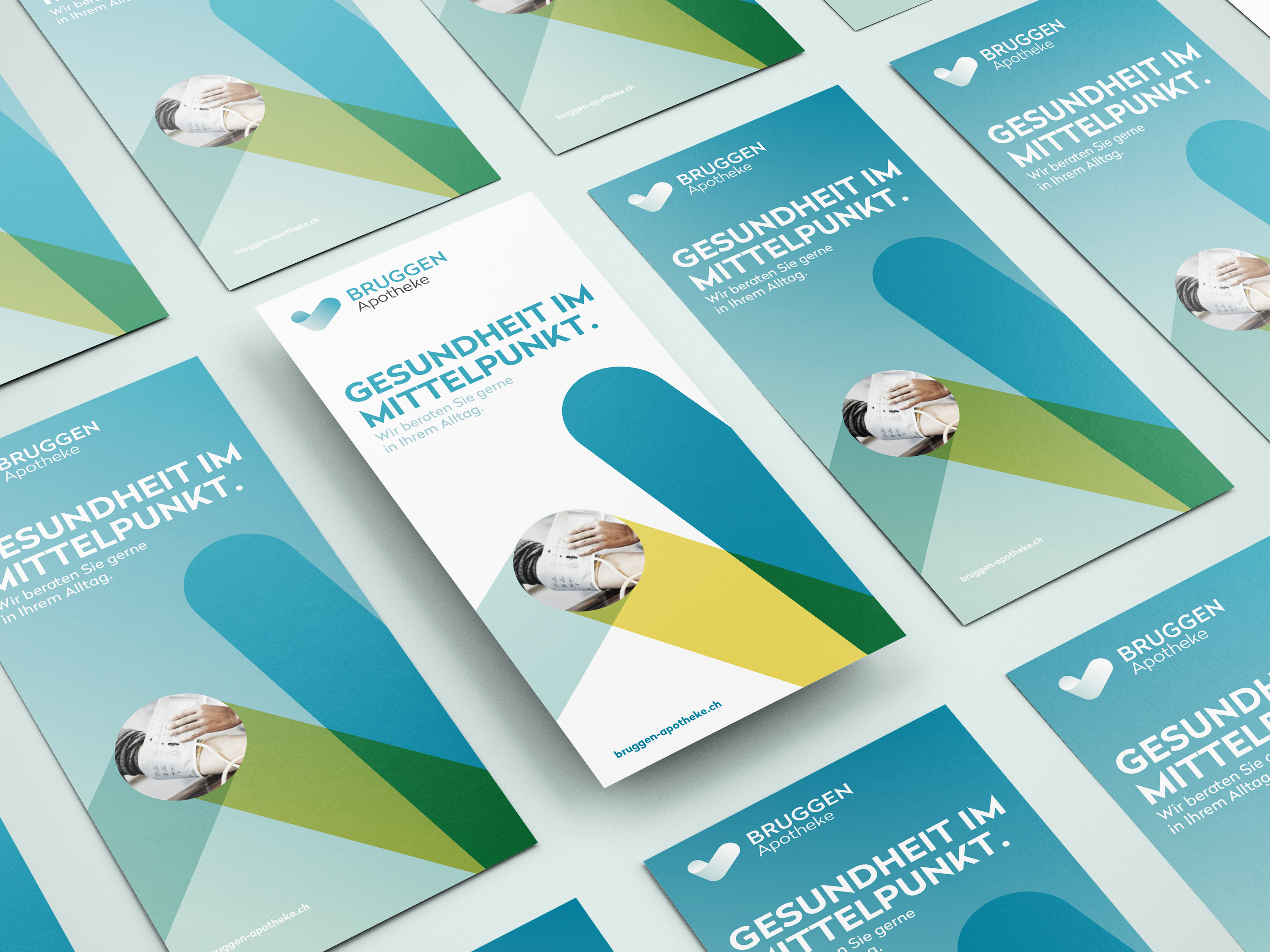 Im Rahmen eines umfassenden Rebrandings entwickelten wir das Logo weiter und erneuerten Signaletik, Bildwelt und sämtliche gestalterischen Elemente. Ziel war es, die Apotheke visuell in die Zukunft zu führen – frisch, modern und nahbar, ohne ihre gewachsene Identität zu verlieren. Das Ergebnis ist ein zeitgemässer Auftritt, der Vertrauen schafft und die Bruggen Apotheke jung, klar und einladend präsentiert.