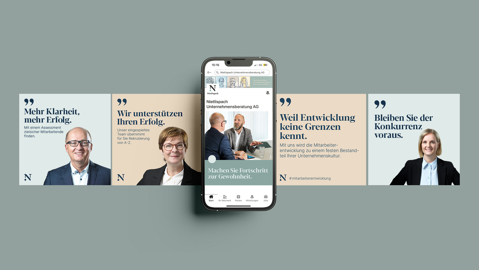 Nietlispach steht für fundierte Beratung im Bereich des Recruitings und echte persönliche Zusammenarbeit. Genau diese Haltung bildete den Ausgangspunkt für das umfassende Rebranding des Unternehmens.