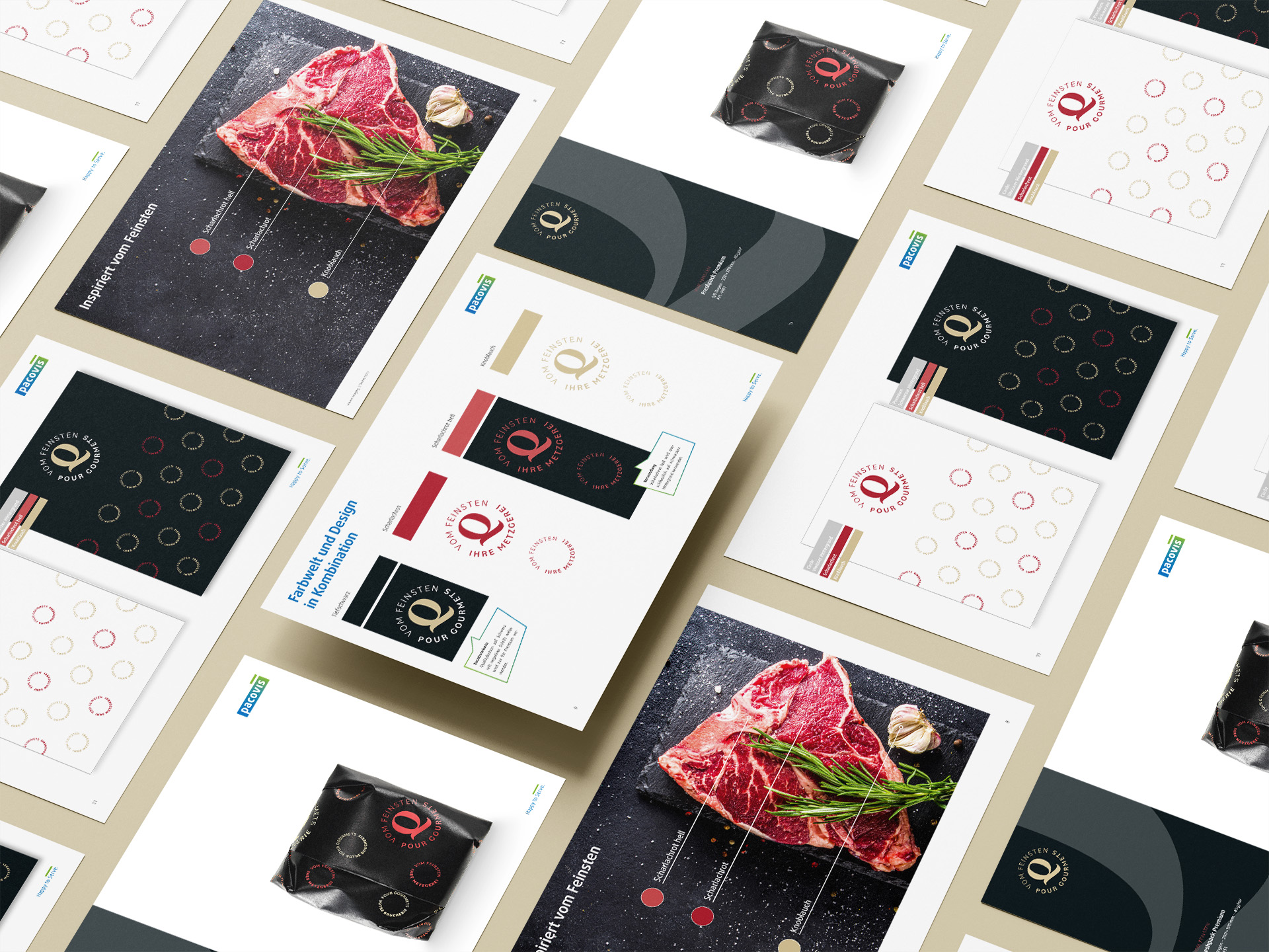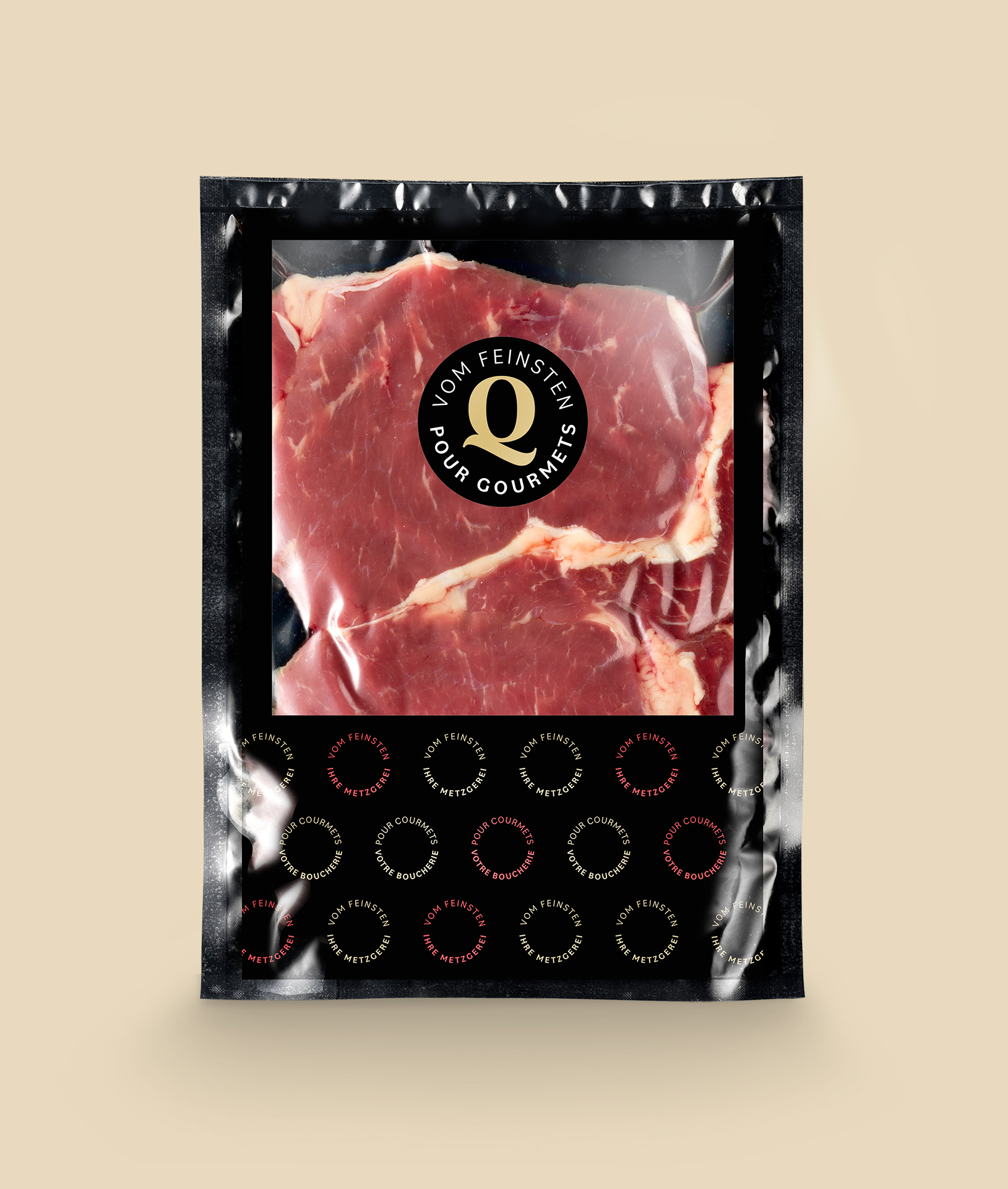 Die Schweizer Metzgereibranche hat den Strukturwandel im Einzelhandel längst vollzogen. Heute prägen exklusive Angebote, feine Delikatessen und hausgemachte Spezialitäten das Bild. Viele Metzgereien verfügen über einen eigenständigen Markenauftritt – jedoch oft ohne ein durchgängiges Verpackungssystem für alle Anwendungen. Hier setzt die Pacovis AG mit dem Label «Vom Feinsten» an. Unsere Aufgabe war es, die Entwicklung eines exklusiven, hochwertigen Auftritts zu erarbeiten. Vom Logo über das Flächendesign bis zu den detaillierten Umsetzungen, die dem anspruchsvollen Selbstbild entsprechen. Weitere Herausforderungen waren, dass die Linie in allen vier Landessprachen auf demselben Produkt funktionieren muss. Zudem musste das Design auf 18 verschiedenen Trägermaterialien in insgesamt 40 unterschiedlichen Ausführungen umgesetzt werden können.