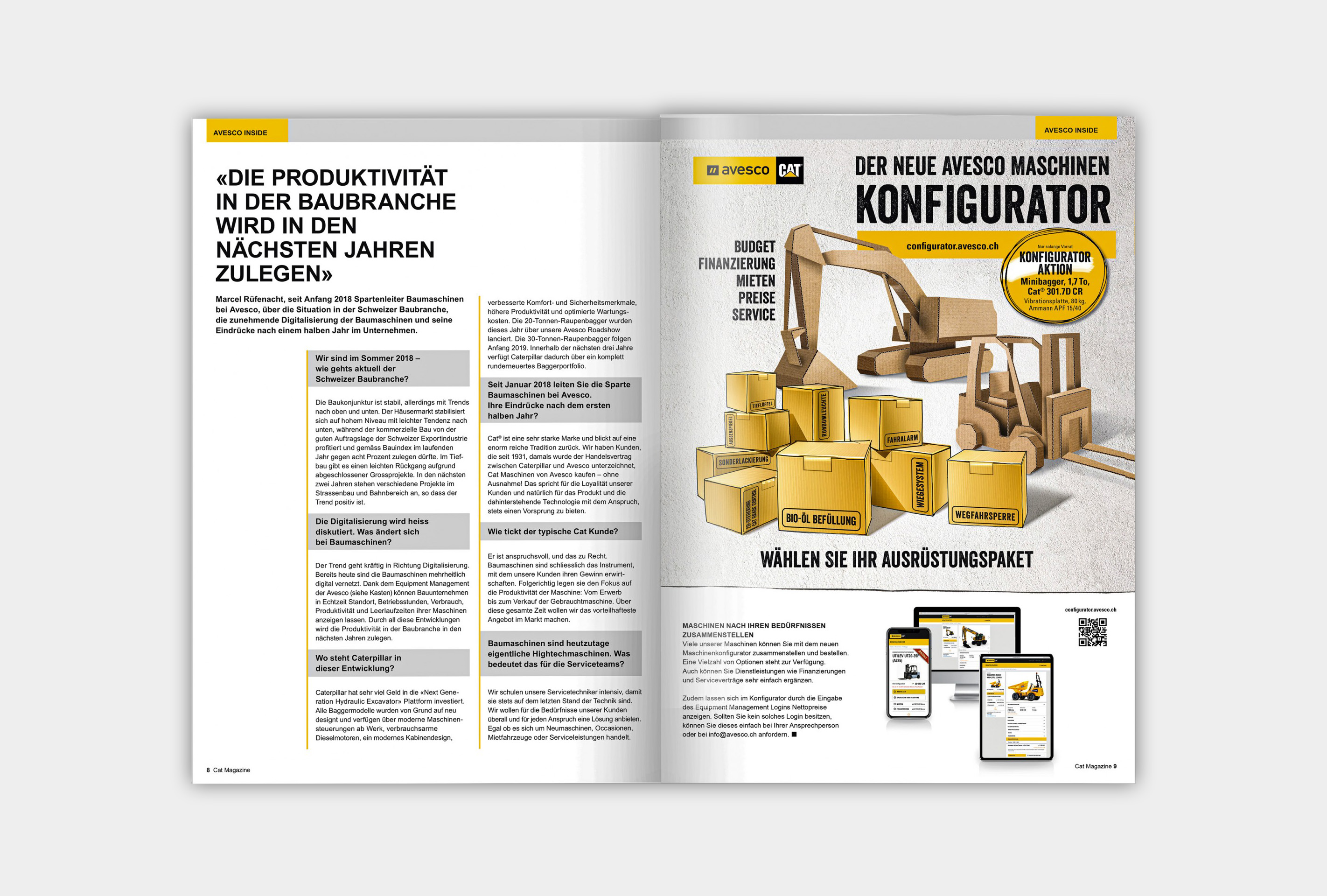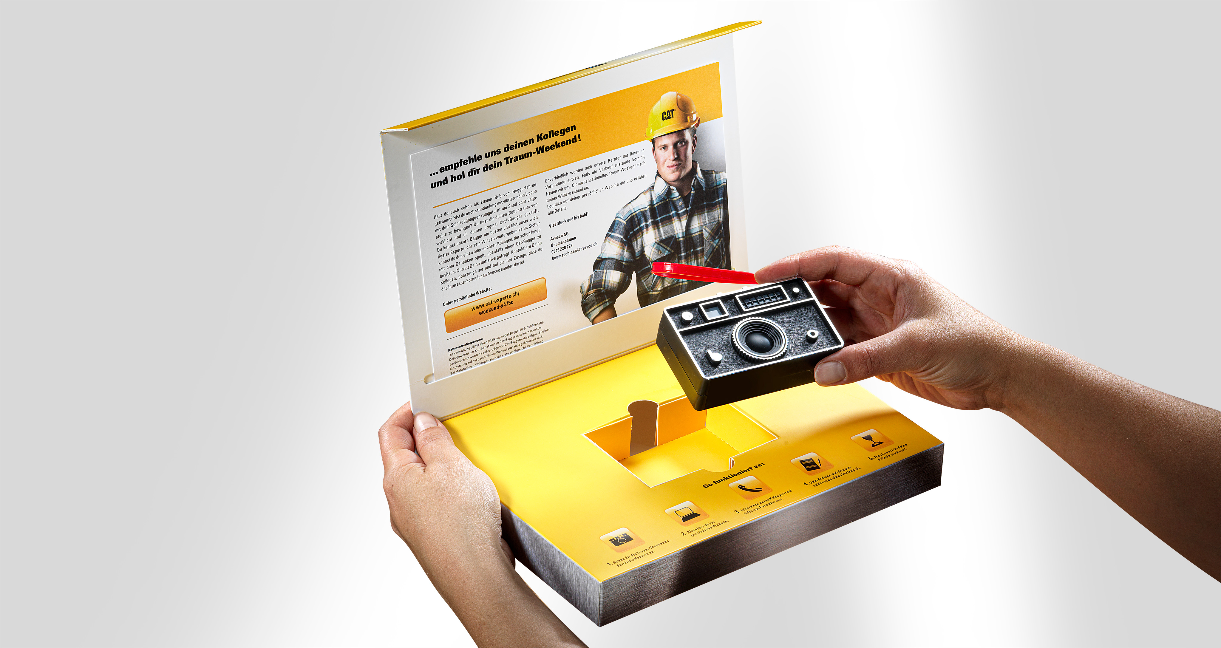 Für Avesco und Caterpillar realisierten wir vielseitige Kampagnen, die die Kraft der Maschinen und den Charakter der Marken konsequent inszenieren. Die eindrucksvolle Arbeitswelt der Bagger bildet dabei den visuellen Kern und verleiht der Kommunikation Ausdruck, Authentizität und einen hohen Wiedererkennungsgrad. Ergänzend dazu entwickelten wir aufmerksamkeitsstarke Mailings und aussergewöhnliche Broschüren, die überraschen, Emotionen wecken und zusätzliche Berührungspunkte schaffen. So wird die Markenbotschaft nicht nur sichtbar, sondern erlebbar. Ein weiteres prägendes Element sind Kampagnen mit prominenten Persönlichkeiten wie Gölä, Trauffer oder dem Schwingerkönig Matthias Sempach. Sie stehen für Bodenständigkeit, Stärke und Glaubwürdigkeit – Werte, die sich nahtlos mit den Marken Avesco und Caterpillar verbinden und die emotionale Bindung zur Zielgruppe nachhaltig stärken.