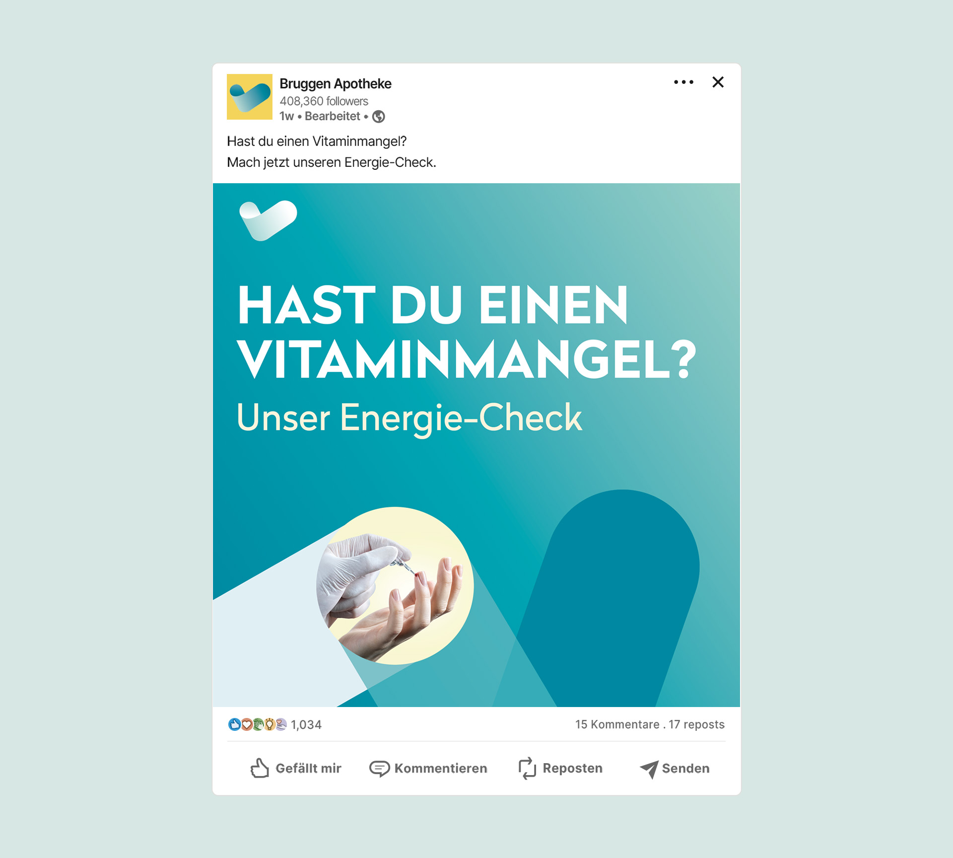Die Bruggen Apotheke begleiten wir als Agentur bereits seit vielen Jahren. Anfang 2025 durften wir anlässlich des 50-jährigen Jubiläums den Markenauftritt neu ausrichten.