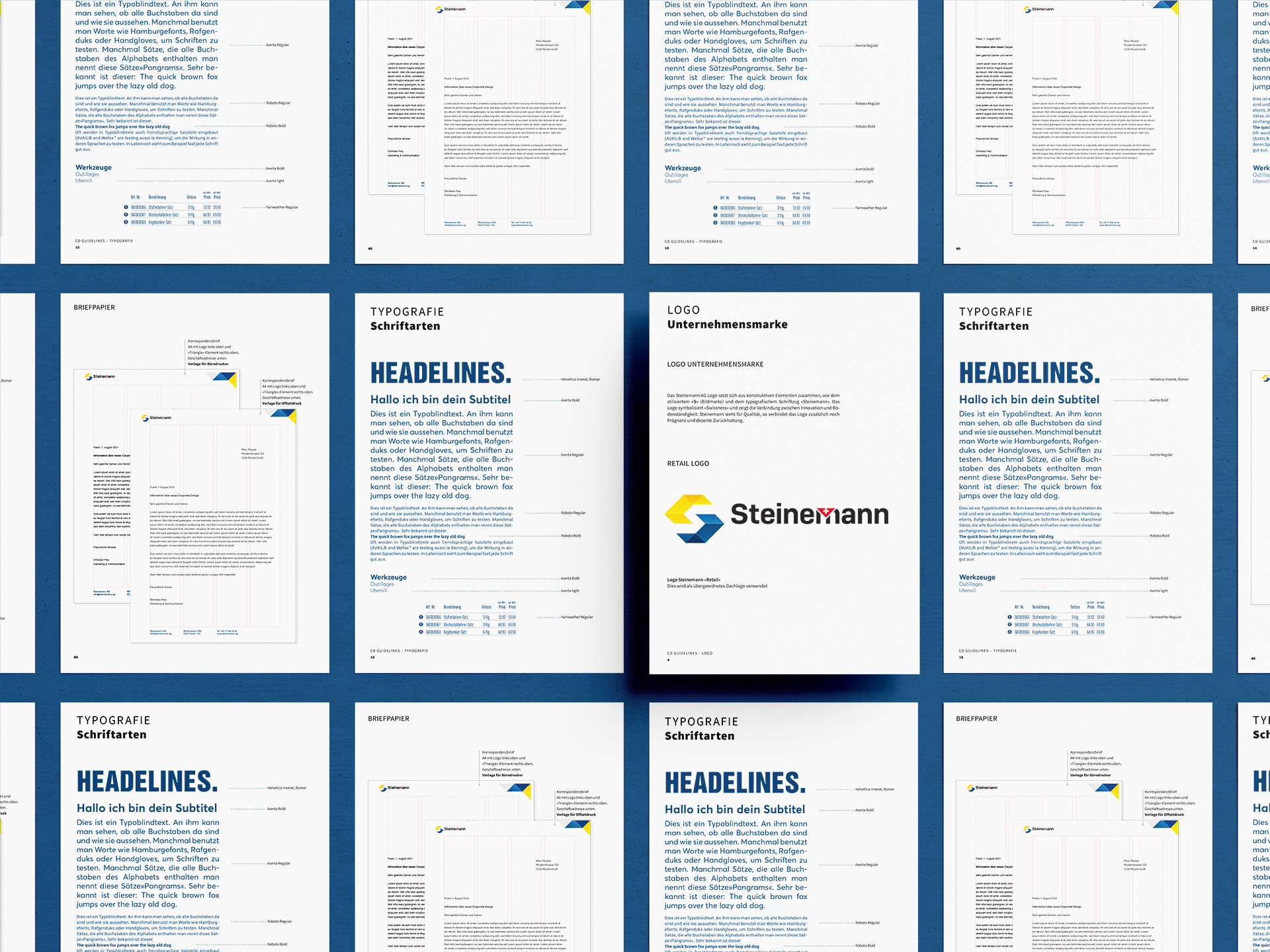 Steinemann AG zählt zu den führenden Lieferanten für das Schweizer Bauhandwerk. Entsprechend umfassend wurde der visuelle Auftritt neu entwickelt – vom Branding über das Corporate Manual, die Bildwelt, Kataloge und Broschüren bis hin zu den Briefschaften. Auch die Logos aller Untergruppen sowie das Packaging der Eigenprodukte wurden neu gestaltet. Als ganzheitliche Kommunikationsagentur wird Steinemann kontinuierlich von uns begleitet und in allen gestalterischen und kommunikativen Fragen unterstützt. Das Ergebnis ist ein moderner, konsistenter Markenauftritt mit klarer Haltung, hoher Wiedererkennbarkeit und starker Präsenz.