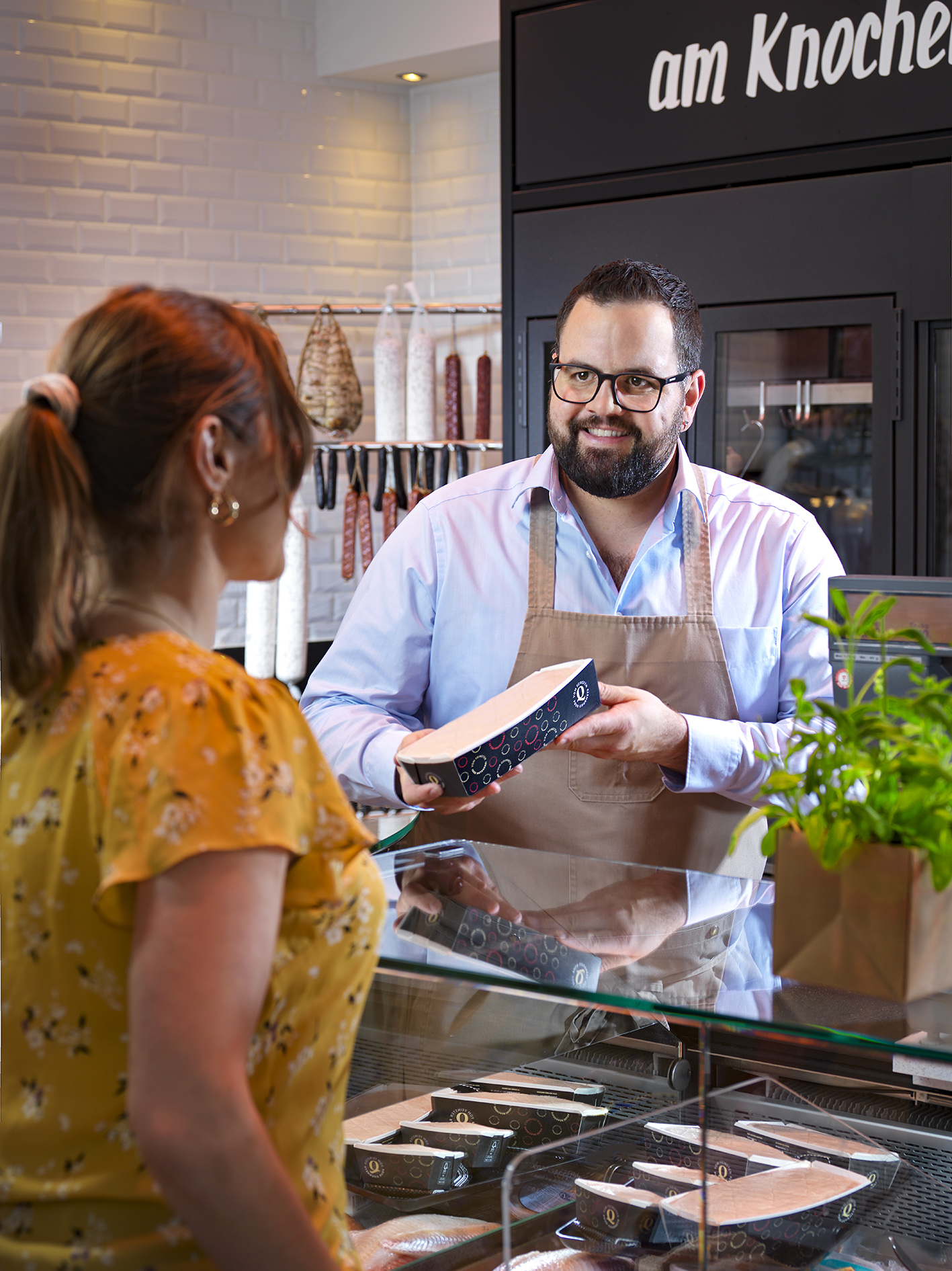 Die Schweizer Metzgereibranche hat den Strukturwandel im Einzelhandel längst vollzogen. Heute prägen exklusive Angebote, feine Delikatessen und hausgemachte Spezialitäten das Bild. Viele Metzgereien verfügen über einen eigenständigen Markenauftritt – jedoch oft ohne ein durchgängiges Verpackungssystem für alle Anwendungen. Hier setzt die Pacovis AG mit dem Label «Vom Feinsten» an. Unsere Aufgabe war es, die Entwicklung eines exklusiven, hochwertigen Auftritts zu erarbeiten. Vom Logo über das Flächendesign bis zu den detaillierten Umsetzungen, die dem anspruchsvollen Selbstbild entsprechen. Weitere Herausforderungen waren, dass die Linie in allen vier Landessprachen auf demselben Produkt funktionieren muss. Zudem musste das Design auf 18 verschiedenen Trägermaterialien in insgesamt 40 unterschiedlichen Ausführungen umgesetzt werden können.